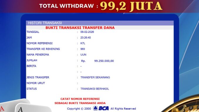 Bukti transfer yang dapat anda lihat adalah bukti SAH / VALID yang langsung di dapatkan melalui bukti transaksi dari Bank yang digunakan untuk pengiriman dana pada rekening pemilik user id. Terima kasih kami sampaikan kepada para pengguna setia BOLAGILA yang telah menggunakan situs kami, sebagai Bandar Terpercaya yang pastinya membayar semua kemenangan member hingga lunas. Apakah BOLAGILA PENIPU ? Reputasi “BOLAGILA TERPERCAYA” sudah sangat melekat.