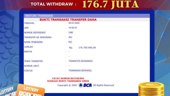 Bukti transfer yang dapat anda lihat adalah bukti SAH / VALID yang langsung di dapatkan melalui bukti transaksi dari Bank yang digunakan untuk pengiriman dana pada rekening pemilik user id. Terima kasih kami sampaikan kepada para pengguna setia BOLAGILA yang telah menggunakan situs kami, sebagai Bandar Terpercaya yang pastinya membayar semua kemenangan member hingga lunas. Apakah BOLAGILA PENIPU ? Reputasi “BOLAGILA TERPERCAYA” sudah sangat melekat.