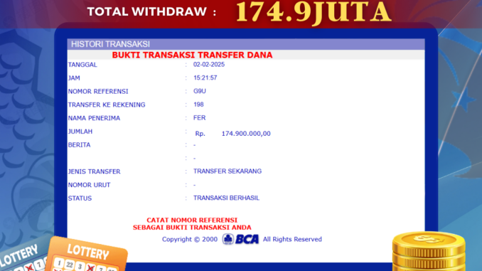 Bukti transfer yang dapat anda lihat adalah bukti SAH / VALID yang langsung di dapatkan melalui bukti transaksi dari Bank yang digunakan untuk pengiriman dana pada rekening pemilik user id. Terima kasih kami sampaikan kepada para pengguna setia BOLAGILA yang telah menggunakan situs kami, sebagai Bandar Terpercaya yang pastinya membayar semua kemenangan member hingga lunas. Apakah BOLAGILA PENIPU ? Reputasi “BOLAGILA TERPERCAYA” sudah sangat melekat.