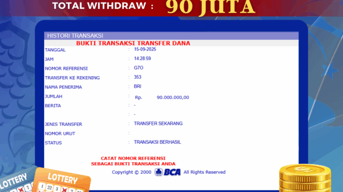 Bukti transfer yang dapat anda lihat adalah bukti SAH / VALID yang langsung di dapatkan melalui bukti transaksi dari Bank yang digunakan untuk pengiriman dana pada rekening pemilik user id. Terima kasih kami sampaikan kepada para pengguna setia BOLAGILA yang telah menggunakan situs kami, sebagai Bandar Terpercaya yang pastinya membayar semua kemenangan member hingga lunas. Apakah BOLAGILA PENIPU ? Reputasi “BOLAGILA TERPERCAYA” sudah sangat melekat.